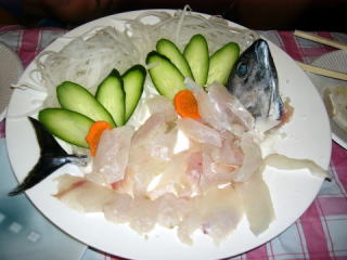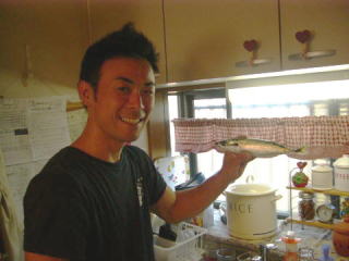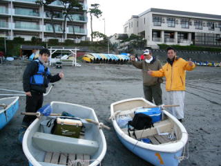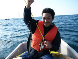 | 10月21日(日)釣り部の初出航は、神奈川県三浦郡葉山町でのボート釣り。 いっぱい釣って今晩のおかずは、魚三昧だ。 ![]() 深夜3:00に出発→5:00相模湾に到着。朝食を済ませ、出航を待ちます。 ![]() 今回のメンバーは、じゅんいちろう、じゅんさん、ヤス、しんごパパの4人。 ![]() やったー!ヤスが、ソウダガツオ釣り上げた!カツオのタタキで食うぞ。 ![]() しんごパパが、この日よく釣り上げたピンクの小さい魚。帰ってから味噌汁に入れて食べましたが、 後で調べたらネンブツダイといって、あまり食べる魚ではないそうです。(外道) ![]() 部長のジュンイチローも、デカイのを釣り上げた。12:00ちょっと早いけど、 今晩のおかずも釣ったことだし家族の元へ帰ります。みんな待ってろよ〜。 ![]() 3:00頃帰宅。今晩の宴会に向けて魚をさばきます。 ただ、ちゃんと魚をさばいた事のある人がいません。本を見ながらやってみます。 いっぱい釣れてニンマリの部長。 ![]() おおー!それっぽく刺身になったぞ。頭とシッポは、ソウダガツオだけど、 刺身はカワハギの物です。このあと奥さん子供も集まってみんなで、宴会しました。 釣って楽しい、飲んで楽しい一日でした。 |